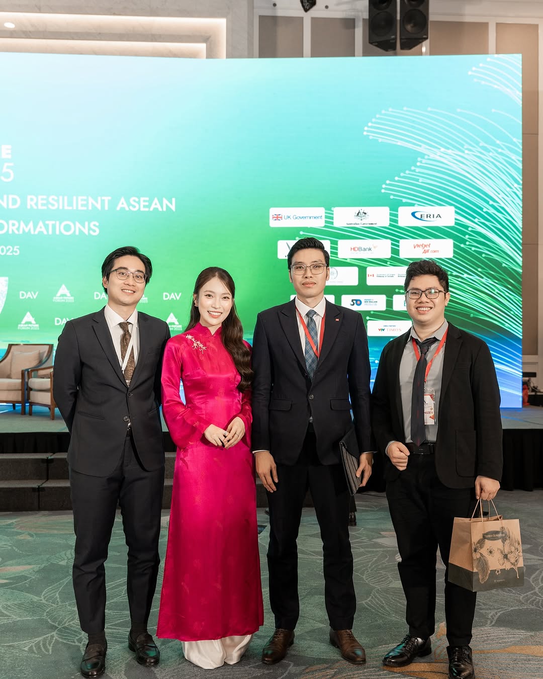 Ở một diễn biến khác, ai hay “cày” Vlog của Khánh Vy chắc không lạ gì chuyện cô nàng từng là sinh viên ngành Quan hệ Quốc tế của Học viện Ngoại Giao. Trong khi nhiều bạn bè thi đỗ công chức ở Bộ Ngoại giao, thì Khánh Vy lại chọn con đường riêng với micro và sân khấu. Ấy thế mà tại Diễn đàn Tương lai ASEAN 2025, cô nàng lại có cuộc hội ngộ “định mệnh” với ba người bạn cũ từ lớp Chính trị 43 CLC. Điều thú vị là cả ba đều đang giữ những vai trò khác nhau trong chương trình, ví dụ như Khánh Vy là người dẫn chương trình, còn ba người bạn kia người là phiên dịch cabin, người là liên lạc viên, người lại phụ trách khách mời.